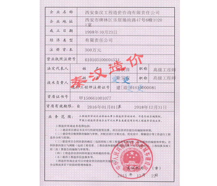 您好,歡迎您訪問西安秦漢工程造價咨詢有限責任公司官方網(wǎng)站!咨詢熱線:029-81204573